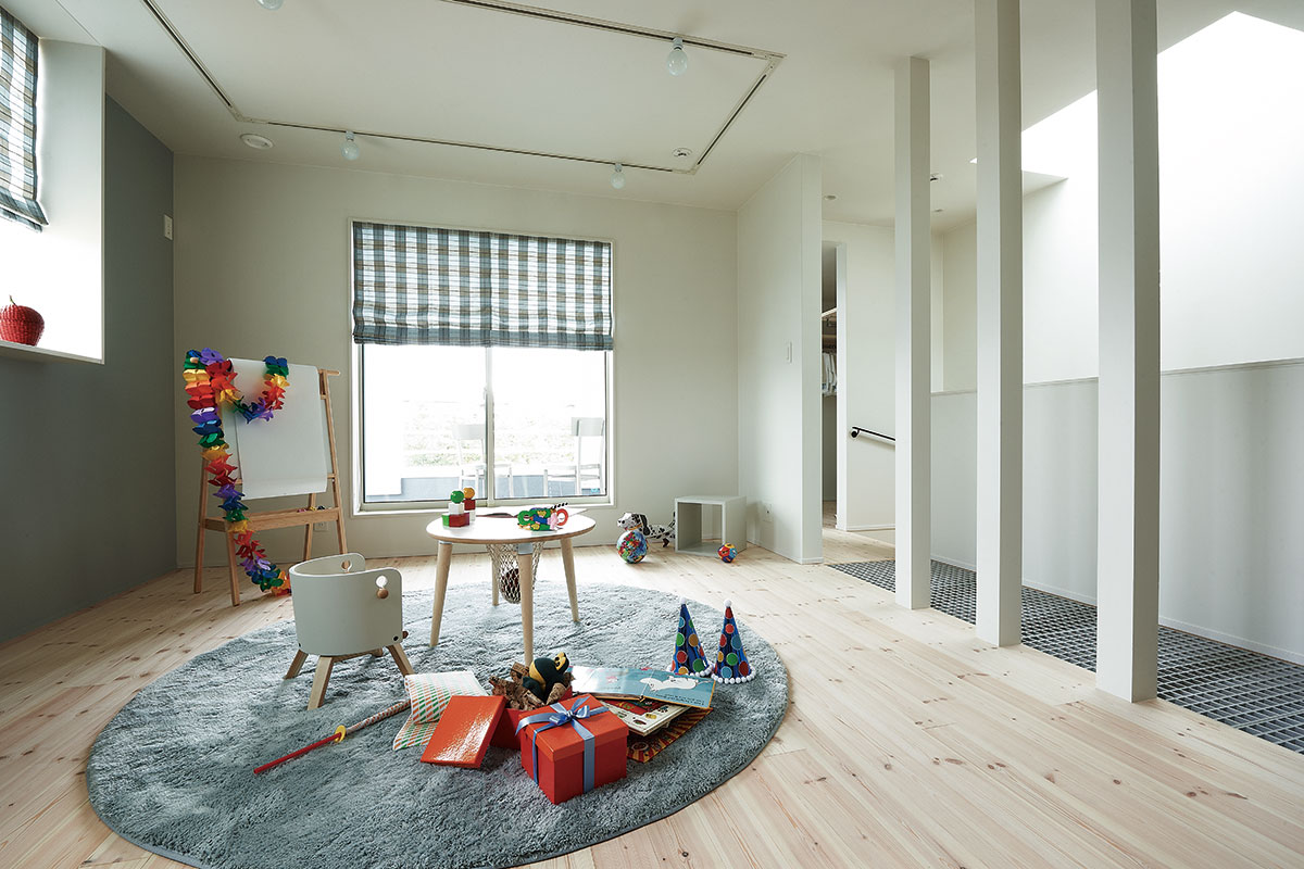 そして、もうひとつ忘れてはならないのが、ママをサポートする家事への配慮。たとえば、リビングの一角に設けた和空間。ママの目が届きやすい子どもの遊び場として、洗濯物をたたんだりアイロンがけをしたり、とっても便利。家族と一緒に居ながら家事もできる、といったママ想いのスペースでもあります。